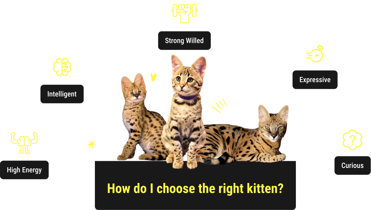 These “savannah cat qualities” are more prevalent in the highest generation as they have the most African serval blood. The first generation cross is called a F1 Savannah, in modern day breeding the Serval is crossed back to a lower generation savannah cat.